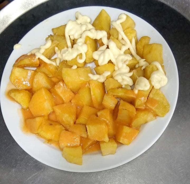 Patatas crujientes bañadas en una deliciosa combinación de salsa brava y alioli suave. Ideal como entrante o acompañamiento.
